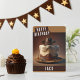 Une carte d'anniversaire avec un gâteau d'anniversaire à thème cowboy sur le devant avec "Joyeux anniversaire", police audacieuse casquette. Personnalisez le devant en ajoutant votre ou vos nom(s). L'intérieur de la carte offre de l'espace pour votre message dactylographié ou manuscrit.
