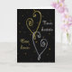C'est une carte d'anniversaire de mariage élégante, avec une image de cœur en spirale dorée entremêlée d'une image de cœur argenté, et placée sur un fond noir dramatique. Le fond est rempli d'étoiles dorées, et le texte dit Deux cœurs, Un amour. Le texte à l'intérieur peut être personnalisé par vos soins. Joli ! *Les illustrations utilisées dans ce design sont la propriété d'Encore Software, Inc., qui autorise l'utilisation à ses concédants. Tous droits réservés.