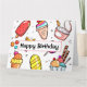 Carte d'anniversaire mignonne avec images vectorielles de crème glacée et de sundaes.