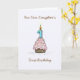 Cartes de premier anniversaire de fille. OEuvre originale devant un cupcake chargé de glaçage et d'arrosage et d'une bougie numéro un qui brûle sur le dessus. Le texte sur le devant dit : "Pour le premier anniversaire de notre fille". L'intérieur a un dicton heureux qui peut être changé ou supprimé. L'art design est un crayon et un stylo de couleur originale.Voir carte pour un Fils ci-dessous.