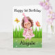 C'est une adorable carte d'anniversaire pour une petite fille avec un mignon hérisson de fille en robe rose et casquette de fête dans un jardin avec deux papillons. Cette carte peut être personnalisée en changeant le texte avant et le nom ainsi que le message intérieur.
