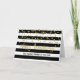 Carte de voeux d'anniversaire de l'employé ou du personnel en rayures modernes noir et blanc et motif de confetti en or.