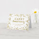 Souhaitez à vos employés et à votre personnel un heureux anniversaire avec votre entreprise avec cette carte de voeux moderne avec un amusant motif de confetti en or et texte de style manuscrit moderne.
