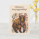 Cette belle carte présente l'illustration d'un ours d'art populaire. A l'intérieur, il y a un message modifiable. Vous pouvez l'utiliser comme carte d'anniversaire ou comme carte pour toute occasion. Vous pouvez modifier le message ou le supprimer pour créer une carte vide. Crédit artistique : Lynda McDaniel-Smith, 2024. Profitez de votre nouvelle carte d'anniversaire éditable Folk Art Bear !