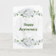 Carte d'anniversaire de mariage avec de jolies roses blanches. Un bouquet de roses en haut et en bas avec un motif de rose clair en arrière-plan. Merci à Design Cuts pour certains des éléments du design.