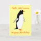 Un pingouin mignon. Changez le nom sur l'avant, vous peut également changer l'occasion. Ajoutez vos noms et message supplémentaire à l'intérieur. Carte entièrement personnalisable, avec le blanc ou les milieux colorés. Pingouin sur l'arrière - plan jaune.