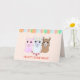 Trois lamas et ballons sur la carte d'anniversaire de corail. Tous les textes peuvent être personnalisés.