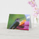Cette carte d'anniversaire de colibri offre une vue d'ensemble d'un colibri dans une mangeoire.