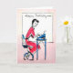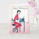 Carte d'anniversaire avec image vintage d'une femme assise sur une machine à écrire.