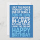 « Je parie que tu n'aurais jamais pensé que tu finirais par être un gendre avec des beaux-parents incroyables, mais te voilà en train de vivre le rêve ! Joyeux anniversaire » Ce design humoristique et sincère célèbre l'anniversaire d'un gendre avec un message ludique sur le fait de vivre le rêve avec des beaux-parents incroyables. Il se moque de la relation compliquée entre beaux-parents et exprime une véritable appréciation. Le design reconnaît le rôle spécial que votre gendre joue dans la vie de votre famille, et le ton humoristique ajoute une touche ludique au sentiment sincère. C'est parfait pour l'humour familial sarcastique et idéal pour les beaux-parents qui partagent des blagues internes.