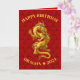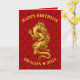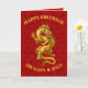 Carte d'anniversaire personnalisée avec un dragon chinois doré sur fond de ventilateur rouge, et intérieur rouge avec cameo de dragon à l'intérieur. Idéal pour les cadeaux d'anniversaire du Dragon et de Nouvel An Chinois 2024. • Joyeux Anniversaire aux Dragons de Bois de 2024 ! • Vous êtes un Dragon si vous êtes né ces années : 1928, 1940, 1952, 1964, 1976, 1988, 2000, 2012, 2024.