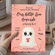 Adorable carte d'anniversaire Halloween avec un fantôme kawaii tenant un coeur rouge, entourée de chauves-souris volantes et de détails éffrayants pastel. Parfait pour les fêtes d’octobre, les anniversaires d’automne et les célébrations d’Halloween pas si effrayantes. Ce joli design fantôme pastel est doux, festif, et idéal pour ajouter une touche de plaisir à tout rassemblement de saison éffrayante.