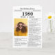 Dites un joyeux anniversaire à quelqu'un né en 1980 avec cette carte d'anniversaire unique de style journal, y compris une photo du récipiendaire et une collection de faits amusants et des nouvelles du monde de l'année de leur naissance. Soyez créatif et créez un souvenir personnalisé. Conçu pour ressembler à un journal vintage de style classique noir et blanc. Une façon mignonne et amusante de célébrer les années 1980!