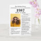Disez un joyeux anniversaire avec cette carte d'anniversaire de style journal unique, y compris une photo du récipiendaire et une collection de faits amusants et des nouvelles du monde de 1987. Soyez créatif et créez un souvenir personnalisé. Conçu pour ressembler à un journal vintage de style classique noir et blanc. Une façon mignonne et amusante de célébrer les années 1980!