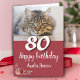 Carte d'anniversaire du Rose d'aquarelle rouge photo 80th Birthday Card. Roses d'aquarelle aux couleurs rouge et orange. Photo d'un chat pour amoureux de les chats. Ajoutez le nom et le message à l'intérieur.