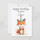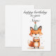 Célébrez un anniversaire spécial avec cette adorable carte de vœux au thème du renard ! Avec un renard de style aquarelle mignon portant un chapeau de fête et tenant un gâteau d'anniversaire, ce design est parfait pour les enfants, les bébés ou quiconque aime les animaux de la forêt. Personnalisez-la avec le nom du destinataire pour un effet unique. Idéal pour imprimer à la maison ou envoyer numériquement.