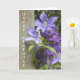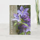 Une carte d'anniversaire florale qui présente l'image photo de jolies fleurs de Clématite violettes le long d'une clôture en bois. Choisissez parmi une carte de style mat ou brillant.