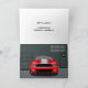 C'est une carte d'anniversaire avec une porte de garage illustrée à l'extérieur, et une voiture haute performance à l'intérieur de la carte.