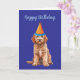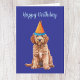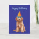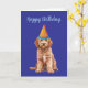 Cette adorable carte d'anniversaire de chien Goldendoodle comprend un chien Goldendoodle mignon dans un graphique casquette d'anniversaire ainsi qu'un dicton personnalisé à l'intérieur. Ce design comprend également un arrière - plan bleu foncé. Profitez de cette carte d'anniversaire pour chiot Goldendoodle!