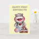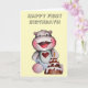 Un bébé hippo mignon et très heureux avec un gâteau, célébrant son premier anniversaire! Customisez-le avec votre propre texte pour une carte très spéciale.