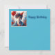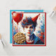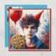 Un beau adolescent fêtant son anniversaire. Les salutations sur la carte sont "Joyeux anniversaire". Sur le dos de la carte se trouve une petite version de l'image avant, et beaucoup de place pour écrire un message. Fabriqué avec l'aide d'AI Night Cafe (Copilot).