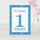 Une très jolie carte d'anniversaire 1er pour personnaliser pour n'importe quel nom ou parent, avec le numéro 1 et la bordure en fleurs brillantes, ditsy sur un arrière - plan bleu turquoise. Vous pouvez également modifier le message intérieur si vous le souhaitez.