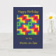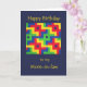Une carte d'anniversaire pour une belle-mère, avec un design abstrait coloré et lumineux à patchwork de cot-quilt de Judy Adamson.