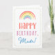 Tu appelles ta mère Madr, pas maman. (Madr signifie mère en farsi.) Imaginez à quel point Madr sera excité de recevoir une carte d'anniversaire qui lui sera adressée en particulier ! Votre fou aimera aussi le design de l'arc-en-ciel boho de cette carte, mignon, d'inspiration aquarelle, qui dit "Bonne fête Madr !" Rendre cette carte personnalisable ! Cliquez sur "Edit Design", "Inside Bottom/Right : Text & Images", "Text" et "Add text" pour écrire votre propre message personnalisé à Madr intérieur!