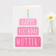 Carte d'anniversaire pour Mutter. Si vous appelez votre mère Mutter au lieu de maman, cette carte d'anniversaire est parfaite pour elle. (Mutter signifie mère en allemand.) Votre marmonnier va aussi adorer le design rose pâle à dégradé de cette carte d'anniversaire avec un gâteau d'anniversaire qui dit "Joyeux anniversaire Mutter!" Rendre cette carte personnalisable ! Cliquez sur "Edit Design", "Inside Bottom/Right : Text & Images", "Text" et "Add text" pour écrire votre propre message personnalisé à Mutter in!
