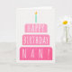 Carte d'anniversaire pour Nan. Si vous appelez votre grand-mère Nan au lieu de grand-mère, cette carte d'anniversaire est parfaite pour elle. Votre nan va aussi adorer le design rose pâle et foncé de cette carte d'anniversaire avec un gâteau d'anniversaire qui dit "Joyeux anniversaire Nan!" Rendre cette carte personnalisable ! Cliquez sur "Edit Design", "Inside Bottom/Right : Text & Images", "Text" et "Add text" pour écrire votre propre message personnalisé à Nan intérieur !