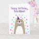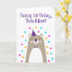 Carte d'anniversaire pour Tutu Kāne. Si vous appelez votre grand-père Tutu Kane au lieu de Grand-père, cette carte d'anniversaire est parfaite pour lui. (Tutu Kāne signifie grand-père en hawaïen.) Votre tutu kāne va adorer le design mignon, moderne, coloré, de style scandinave de cette carte d'anniversaire qui comprend un ourson en peluche brun et gris avec un casquette de fête violet et cravate et rose, jaune et bleu confetti avec le texte "Joyeux anniversaire, Tutu Kane!" Rendre cette carte personnalisable ! Cliquez sur "Edit Design", "Inside Bottom/Right : Text & Images", "Text" et "Add text" pour écrire votre propre message personnalisé à Tutu Kāne à l'intérieur !