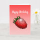 Délicieux framboise rouge sur une Carte d'anniversaire Joyeuse pliée.