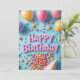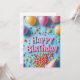 Cette carte d'anniversaire lumineuse et joyeuse comporte les mots "Joyeux anniversaire" en lettres roses audacieuses entourées de ballons colorés, de sucettes, de confettis et d'un casquette de fête jouant en forme de cône. Une cascade de bonbons vibrants déverse sur un arrière - plan bleu amusant, créant une ambiance joyeuse et festive. Parfait pour les enfants, les amateurs de douceurs, ou toute personne qui aime les célébrations amusantes, à thème de bonbons et l'énergie de fête lumineuse.