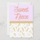 Cette carte présente un design sucré pour une nièce douce ! L'esthétique est une esthétique de crème glacée, rendant la carte entière beaucoup plus douce à donner. Le dos contient le même design rose et or/beige avec le logo Block by Block Alaska. En d'autres termes, cette carte est parfaite pour cette douce nièce !