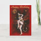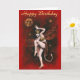 Cette carte est illustrée avec une dame de diable dansante vintage et la carte d'anniversaire textuelle joyeuse.