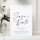 Annoncez votre jour spécial avec style avec cette carte d'annonce de mariage élégante bleue florale. Caractérisée par une écriture marine sophistiquée sur un fond blanc croquant, cette carte dégage un charme intemporel. Le dos présente un motif floral bleu délicat, ajoutant une touche romantique. Parfaite pour les mariages, les fiançailles et les célébrations formelles, cette carte d'annonce de mariage garantit que vos invités marquent leurs calendriers pour votre événement inoubliable.