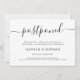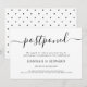 Carte d'annonce de mariage reporté moderne noir et blanc avec un motif à pois au verso. Si la date de votre mariage a dû être modifiée, c'est un excellent moyen de prévenir vos invités.