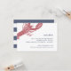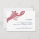La carte d'annonce de réception de style côtier présente les détails de votre réception de mariage en bleu marine, accentuée d'une illustration de homard de style vintage dans un rouge atténué et délavé. Conçue pour correspondre à nos invitations et accessoires de mariage au thème du homard Harborside.
