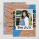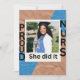 Célébrez votre moment de diplomation fier avec ce design de carte photo de fin d'études « Elle a réussi » élégant. Parfait pour les diplômés en soins infirmiers et les célébrations de la promotion 2026, cette mise en page moderne présente une déclaration audacieuse avec une photo personnelle mise en valeur. Idéal pour les annonces, les invitations de fête ou les cartes de souvenir. Disponible en 4 belles variations de couleurs pour correspondre à votre style unique.