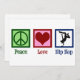 Cartes Hip hop Peace Love. Un hip hop cool dansant carte de vacances pour un danseur de break ou un artiste hip hop.