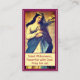Design front features a reproduction of the painting of Saint Philomena which is now housed in the shrine of Ars. A yellow banner is featured at bottom displaying the customizable words, "Saint Philomena, Powerful with God, Pray for Us!" The image is a reproduction of the painting of St. Philomena which was commissioned by St. John Vianney himself who reported that this is the exact likeness of how she appeared to him. Saint Philomena is the patroness of children and has worked many miracles to those who invoke her aid. Entire design is framed by a burgundy and yellow border. Reverse features a customizable prayer to Saint Philomena displayed against a white background.