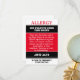Assurez-vous de votre sécurité avec notre carte d'appel d'urgence personnalisée Red Allergy Alert Restaurant. Cette carte peut être modifiée avec des informations spécifiques sur les allergies, ce qui la rend idéale pour les voyages et les repas à l'extérieur. Il fournit des détails cruciaux sur vos allergies et des instructions sur la façon d'éviter la contamination croisée lors de la préparation des repas. Tout le texte est modifiable, vous permettant d'ajouter votre nom et vos coordonnées. Le dos de la carte est blanc, ce qui vous permet d'écrire à la main des notes supplémentaires.