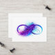 Infinity symbole with a beautiful feather painted in purple and blue bright colors on white background