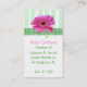 Jolie carte de visite maman avec des rayures vertes et blanches au sommet avec un ruban vert et blanc en vichy et jolie marguerite Gerber rose. Customisez cette belle carte de visite maman avec le nom de votre enfant et vos numéros de contact sur le dos de la carte.