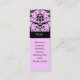 Un amusement peu de marque-page parfaite pour des aides, dons, ou en avoir juste en main pour votre pleeasure de lecture. Il a une conception rose et noire de damassé sur le dessus. Une rayure noire fonctionne par le milieu avec une tache pour mettre votre nom ou message. Le fond est rose avec un poème écrit dans le noir. Le dos a une tache pour un message.