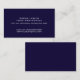 A simple and classic deep blue professional card... your name, title, company name, phone number, and email address, organized clearly on a standard-sized card... printed on front side only.