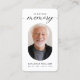 Grâce à la Carte de prière commémorative des funérailles catholiques, vous pouvez honorer la mémoire et célébrer la vie de votre être cher. Cette carte personnalisée est une belle façon d'honorer le défunt et d'offrir de la sympathie pendant leur perte. Notre carte de prière commémorative attentive présente une photo de votre choix et est pensée pour servir de garde émotionnelle pour rappeler vos moments spéciaux passés ensemble. Le design comprend une photo, un script de typographie, des dates et la prière sur le dos.