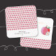 Small square double-sided contact card with rounded corner designed for educators on mind . It has a pattern of a red apple and white flower on both sides . Add your own info using the provided template . Look in our collection for more options .