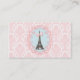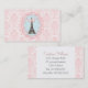 Ce design s'inspire de Paris, ville de la mode et de la lumière ! Il présente la fameuse tour de l'aiffel en style d'illustration vintage, où un ruban rose clair est gracieusement posé sur le dessus pour ajouter une touche de pouce. Le arrière - plan est composé de pois bleu clair et blanc et de damas rose et blanc. Enfin, il est encadré par un cadre de style vintage en tourbillons roses. Modifiez le texte du modèle en entrant vos nom et adresse.