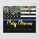 Envoyez des voeux de Noël Joyeux à vos amis, votre famille, vos collègues services de police et votre communauté avec cette carte de Noël Joyeuse Police de Ligne Bleue - American Flag aux couleurs du drapeau de la police, noir et bleu moderne avec des feuilles saints et des baies et élégant script d'or. Personnalisez avec votre message et nom de famille ou service de police. Ces cartes de Noël de la police sont parfaites pour les familles policières et policières ainsi que pour les services de police. DROIT D'AUTEUR © 2020 Judy Burrows, Black Dog Art - Tous droits réservés. Budget Police Noël Mince Ligne Bleue Police Carte de vacances
